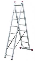 • Aluminiowe, dwuczęściowe drabiny ze szczeblami z trzema praktycznymi funkcjami: jako drabiny przystawne, rozsuwane i drabiny wolnostojące.