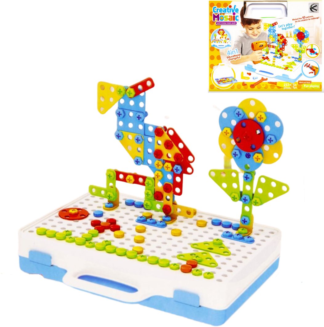 Ten produkt to marzenie każdego małego majsterkowicza! W zestawie znajduje się wiele kolorowych elementów o różnych kształtach, które pomogą w rozwijaniu wyobraźni oraz kreatywności dziecka. W zestawie znajduje się 237 elementów w tym dołączony został klucz francuski, śrubokręt a także wkrętarka na baterie. Elementy mogą zostać przykręcone zarówno przy pomocy dołączonych narzędzi, jak i własnoręcznie, co rozwija zdolności manualne dziecka.