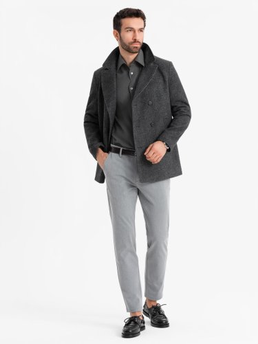 Krótki dwurzędowy męski płaszcz z wełną grafitowy V1 OM-COWC-0115 XL