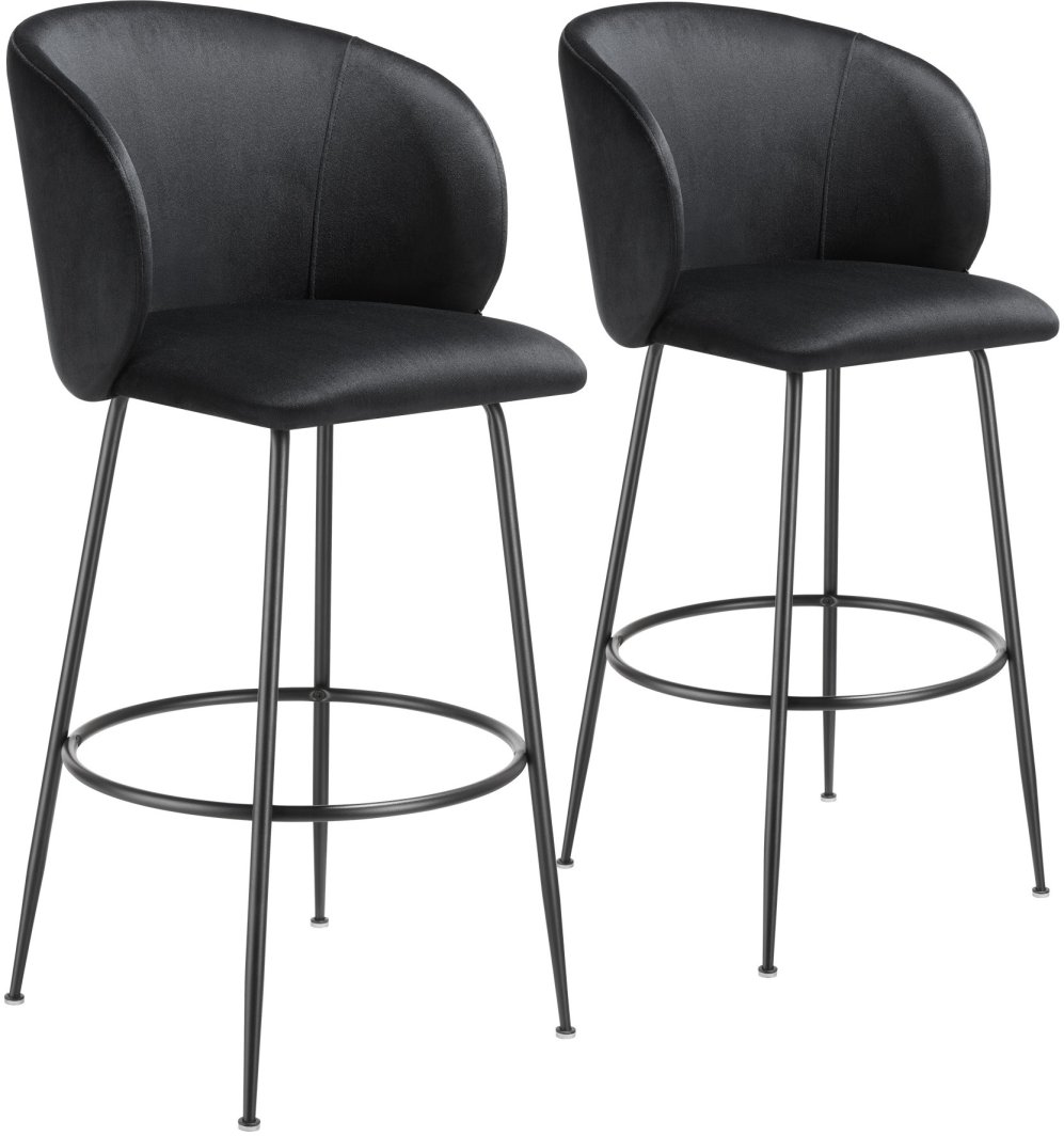 Krzesło barowe Luana, z oparciem, wygląd aksamitu - czarny/czarny, Zestaw 2 sztuk