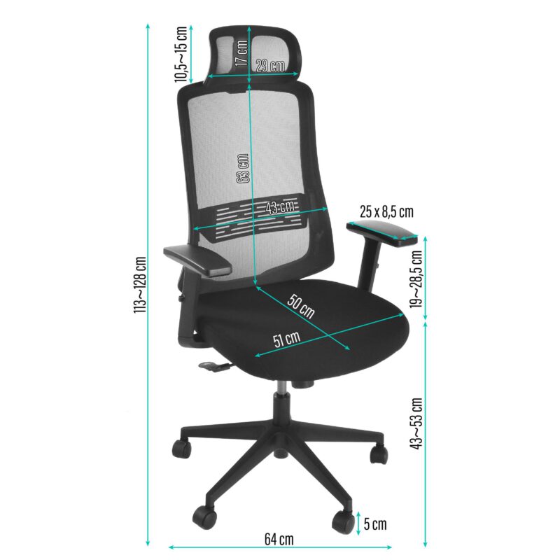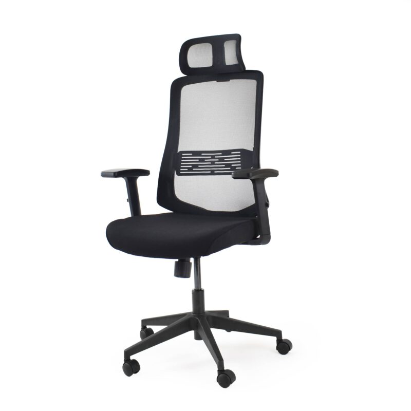 Wygodny fotel biurowy ErtuSolid® AMO-95 z mechanizmem odchylania oparcia. Fotel wykończono trwałą tkaniną odporną na wycieranie, a oparcie obszyto oddychającą siatką membranową. Obrotowa podstawa została wykonana z lekkiego, a jednocześnie wytrzymałego nylonu. Krzesło zaprojektowano z myślą o zapewnieniu komfortu podczas wielogodzinnej pracy. Ergonomiczne oparcie z regulowanym podparciem lędźwiowym wspiera utrzymanie prawidłowej postawy ciała. Dzięki regulowanym podłokietnikom, wysokości siedziska i zagłówka, fotel ten oferuje maksymalny komfort i ergonomię.