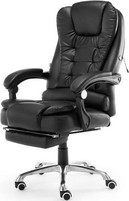 Zadbaj o profesjonalny wystrój swojego biura oraz komfort pracy! Fotele biurowe Elgo zostały zaprojektowane z myślą o profesjonalistach, dla których liczy się komfort i ergonomia miejsca pracy. Klasyczny wzór idealnie wpasuje się w wystrój Twojego biura. Poszycie wykonane ze skóry ekologicznej. Wytrzymałe poszycie z EkoSkóry zapewni komfort korzystania z fotela na długie lata. Ponadto utrzymanie czystości będzie łatwe i przyjemne. W przypadku zabrudzenia wystarczy przetrzeć wilgotną ściereczką i już - gotowe! 5 ramienna noga wyposażona w kółka. Konstrukcja nogi fotela gwarantuje jego stabilność podczas pracy w biurze. Kółka zamontowane na końcu każdego ramienia ułatwiają przenoszenie fotela. Dodatkowo kółka zostały wyposażone w gumowe elementy zapobiegające rysowaniu podłoża. 5 ramienna noga wyposażona w kółka. Konstrukcja nogi fotela gwarantuje jego stabilność podczas pracy w biurze. Kółka zamontowane na końcu każdego ramienia ułatwiają przenoszenie fotela. 6 programów masażu. Fotel został wyposażony w mechanizm masujący, który pozwala rozluźnić spięte mięśnie. Ustaw tryb masażu o stałej częstotliwości, pulsujący, falujący, bądź tryb mieszany o zmiennym natężeniu i pozwól swoim mięśniom na chwilę relaksu. Zintegrowany podnóżek. W przerwie między codziennymi zadaniami odpręż się jeszcze bardziej, dzięki wysuwanemu podnóżkowi. Wystarczą 2 ruchy i gotowe - leżak biurowy!