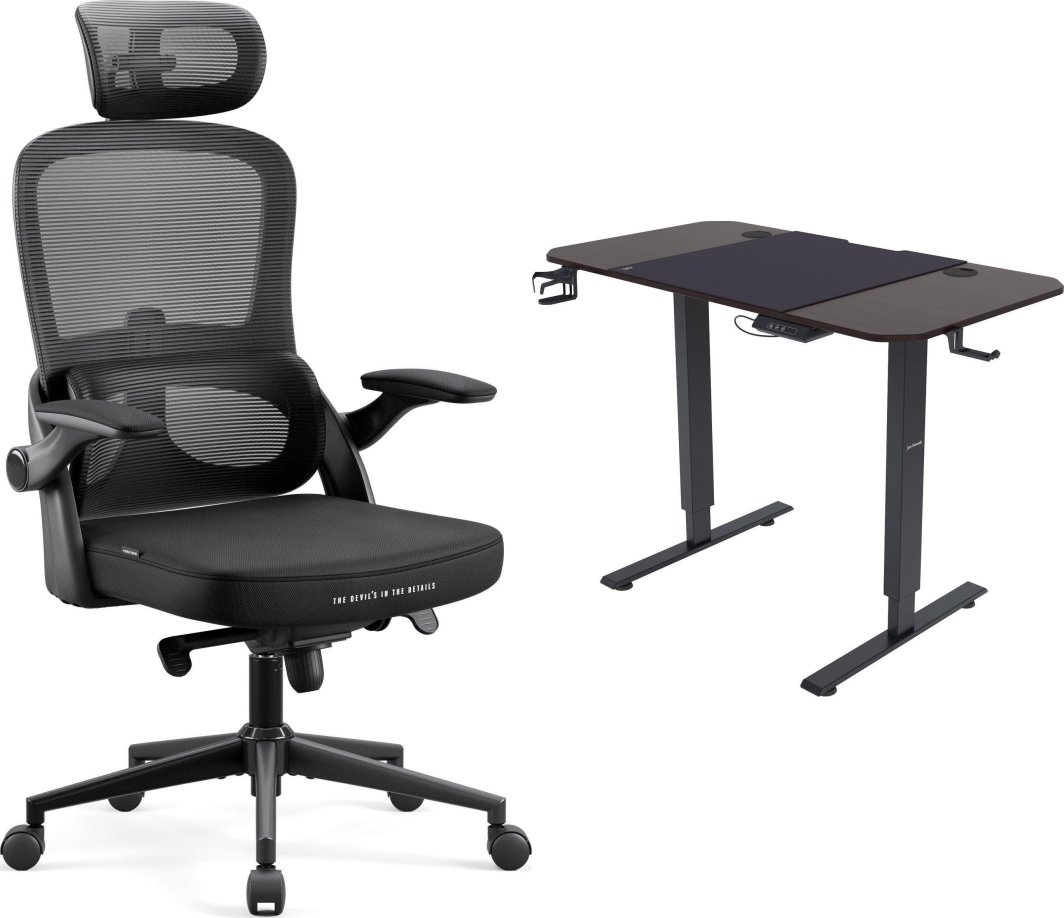 Krzesło biurowe Diablo Chairs V-Light Czarne + EGON 1100 Orzechowe 110 cmx60 cm