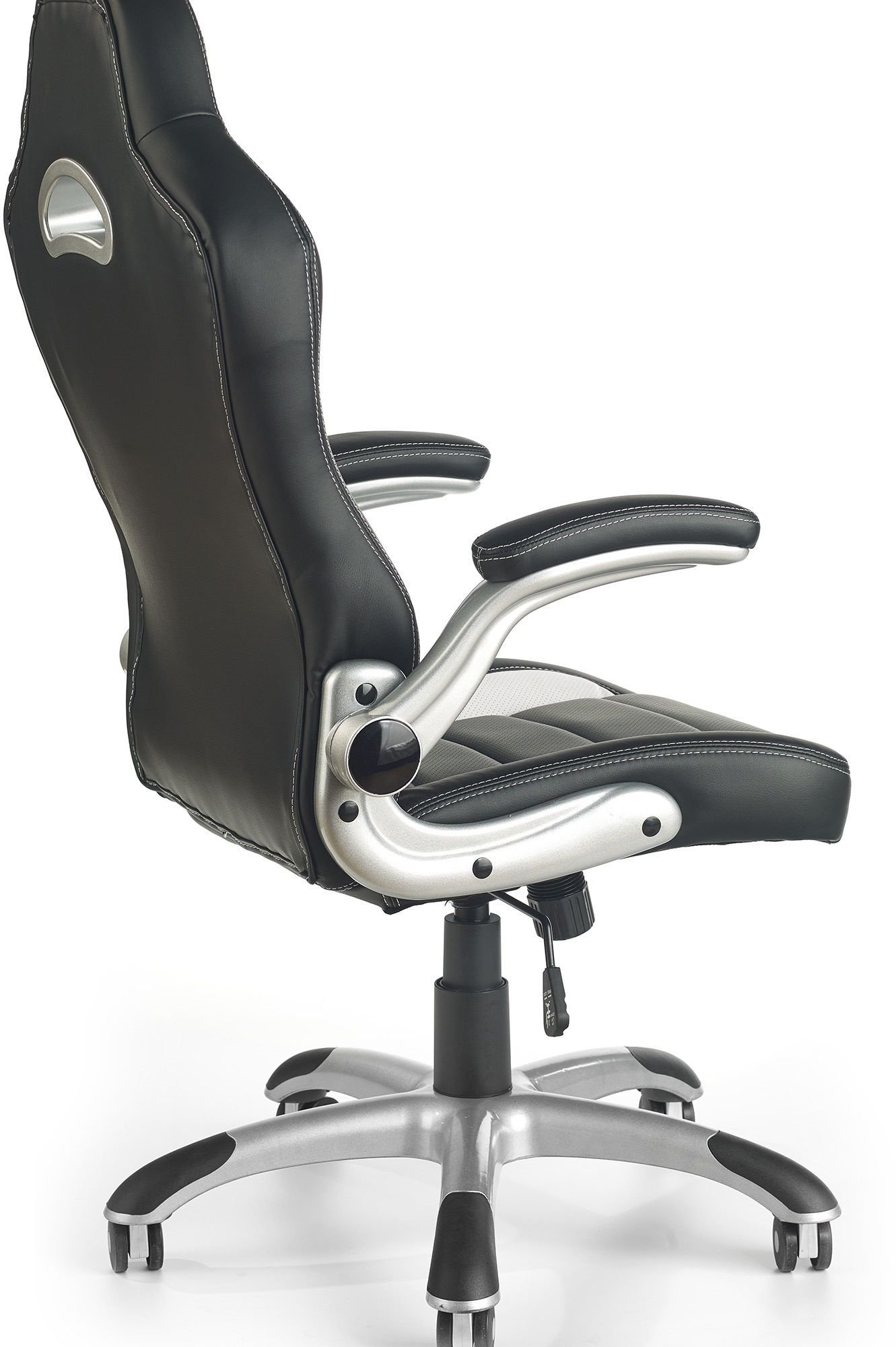 Siedzisko oraz oparcie fotela obrotowego Halmar LOTUS tapicerowane są ekoskórą* perforowaną w trzech kolorach – czarnym, białym oraz popielatym. Posiadają eleganckie przeszycia dodające im klasy i stylu. Kształt oparcia umożliwia wygodne ułożenie ciała – podparcie pleców i głowy, a także zapewnia cyrkulację powietrza poprzez otwór, który się w nim znajduje. Podłokietniki oraz pięcioramienna podstawa mają srebrne satynowe wykończenia. Fotel Halmar LOTUS został wyposażony w regulowane podłokietniki, zakończone miękkimi nakładkami.