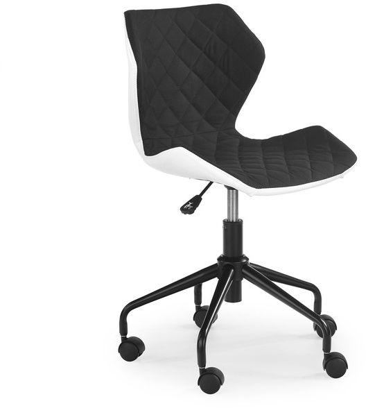 MATRIX z przodu tapicerowany jest pikowaną tkaniną, która zapewnia dobrą cyrkulację powietrza. To zwiększa komfort pracy. Tył fotela to wysokogatunkowa skóra ekologiczna, którą w łatwy sposób można wyczyścić. Fotel nie ma podłokietników, dzięki czemu po skończonej pracy bez problemu wsuniesz go pod blat biurka. To oszczędzi miejsce w pokoju. Siedzisko wraz z oparciem utrzymane są przez pięcioramienną stalową podstawę jezdną. Kółka nadają się do powierzchni dywanowych, ale możesz dokupić kółka pokryte kauczukiem, które nadają się do użytkowania po panelach i podłogach. Fotel ma mechanizm podstawowy taki jak regulacja wysokości siedziska. Z łatwością dostosujesz fotel do wzrostu użytkownika.