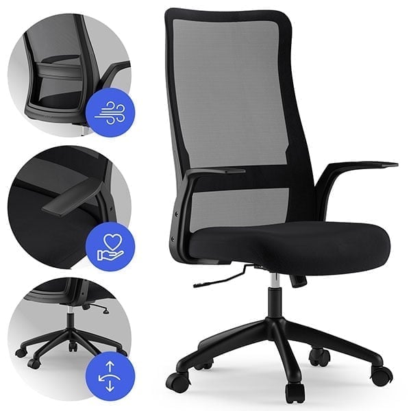 Krzesło biurowe SENSE7 Juno Czarny + Podkładka PREYON Falcon