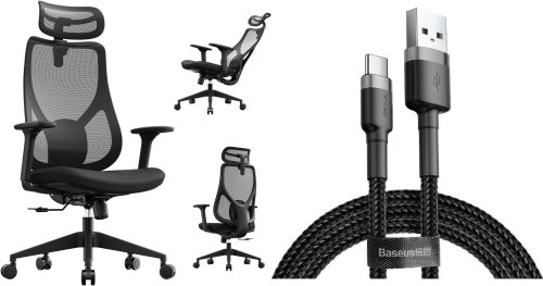 Krzesło biurowe SENSE7 Moyo Czarne + kabel usb