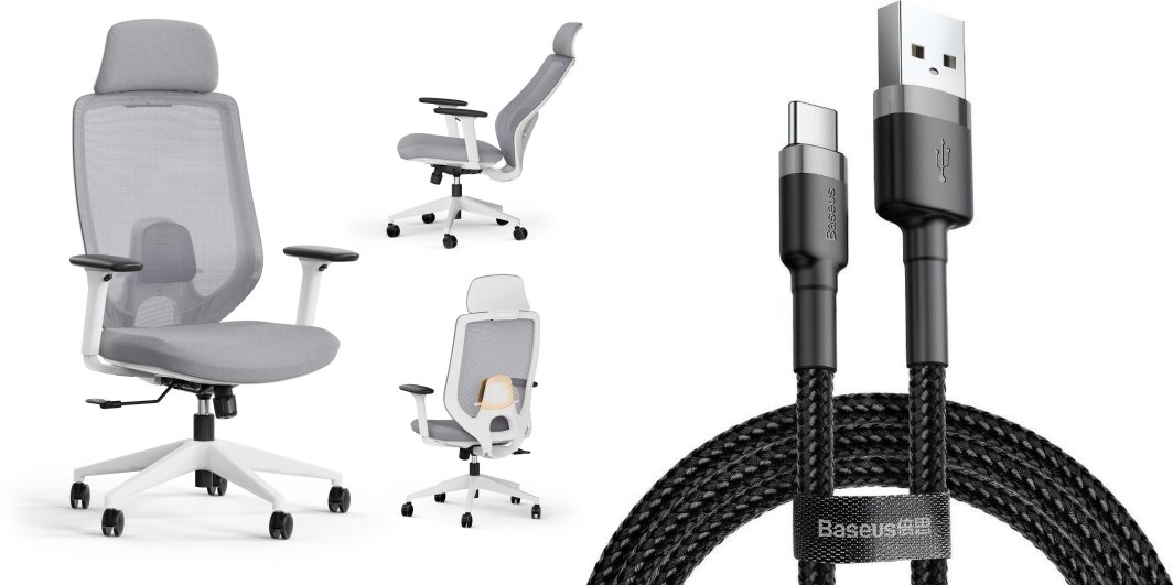 Krzesło biurowe SENSE7 Nakai Biało-szare + kabel usb