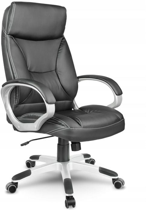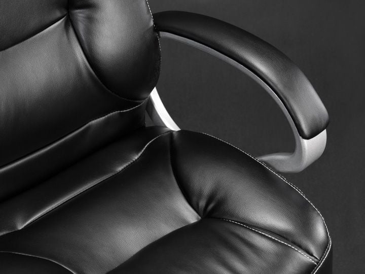 Elegancki i nowoczesny design fotela komponuje się z dowolnie zaaranżowaną przestrzenią biurową. Sylwetkę fotela zaprojektowano tak, aby lekka forma harmonizowała z solidną linią, co dodaje mu profesjonalnego charakteru. Walory estetyczne uzupełnia biały szew, tworzący przyjemny kontrast na tle czarnej tapicerki.