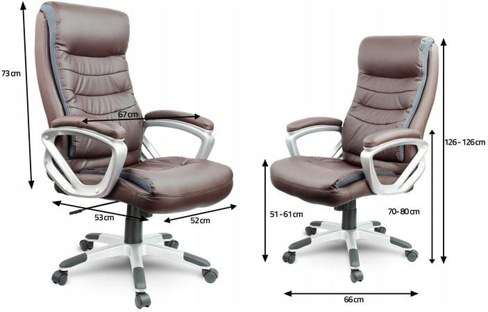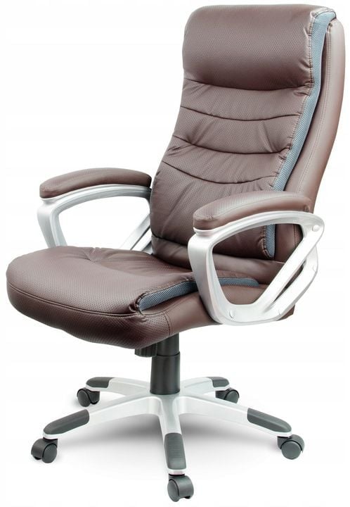 Fotel wyróżnia się lekkością projektu, jednocześnie zachowując elegancki i profesjonalny charakter. Projektanci dobrali dla Ciebie stonowany, brązowy odcień przyjemnej w dotyku tapicerki ze skóry ekologicznej*.