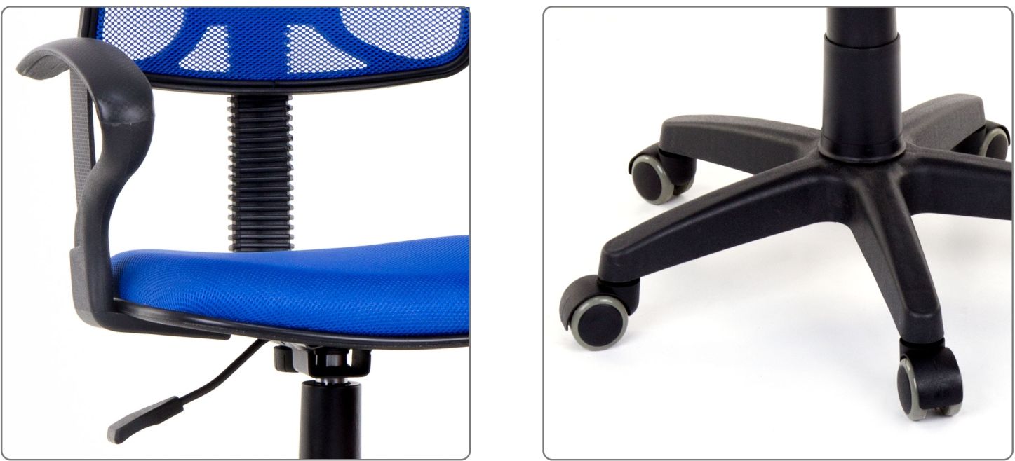 Oparcie wykonane z mikrosiatki zapewnia doskonałą wentylację pleców w czasie upalnych, letnich dni. Ergonomiczne siedzisko wypełnione wysokiej jakości pianką odporną na odkształcenia oraz możliwość regulacji wysokości pozwalają przyjąć wygodną pozycję przy biurku. Solidna pięcioramienna podstawa na gumowanych kółkach gwarantuje stabilne podparcie krzesła. Dzięki zastosowaniu tego samego siłownika co modelu 8906, w naszym fotelu, w przeciwieństwie do foteli konkurencji, może siedzieć również osoba dorosła.