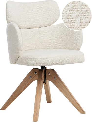 Krzesło do jadalni Obrotowy MARCY Boucle Jasnobeżowy to doskonałe połączenie stylu i użyteczności. Jego obrotowa podstawa oraz eleganckie drewniane nogi wprowadzają nowoczesny akcent do Twojej jadalni, zapewniając jednocześnie komfort i stabilność.