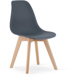 Drewniane nogi krzesła KITO, wykonane z bukowego drewna, nie tylko zapewniają stabilność, ale także dodają naturalnego uroku. Ich ciepły odcień doskonale kontrastuje z grafitowym siedziskiem, tworząc harmonijną całość.