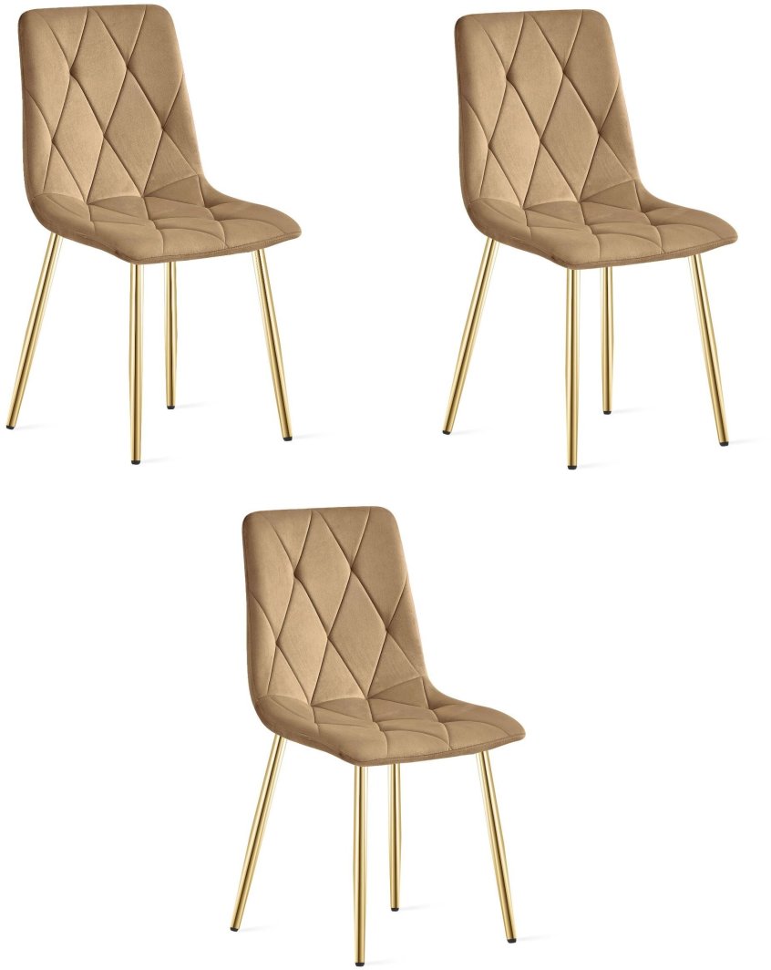 Krzesło tapicerowane brązowe welur LIBRA nogi złote do kuchni jadalni x3