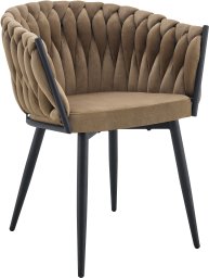 Krzesło tapicerowane welur Glam to znakomity wybór dla tych, którzy cenią sobie elegancję oraz nowoczesny design. Jego brązowe obicie z weluru w połączeniu z czarnymi, stalowymi nogami tworzy harmonijną całość, która doda odrobinę luksusu do każdego wnętrza. Idealnie sprawdzi się w salonie, jadalni, gabinecie czy sypialni, nadając im wyjątkowego charakteru.