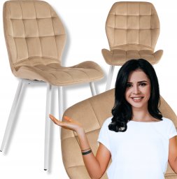 Krzesło Tapicerowane Welurowe Beż LUCKY Kuchenne Do Jadalni Kuchni Salonu
