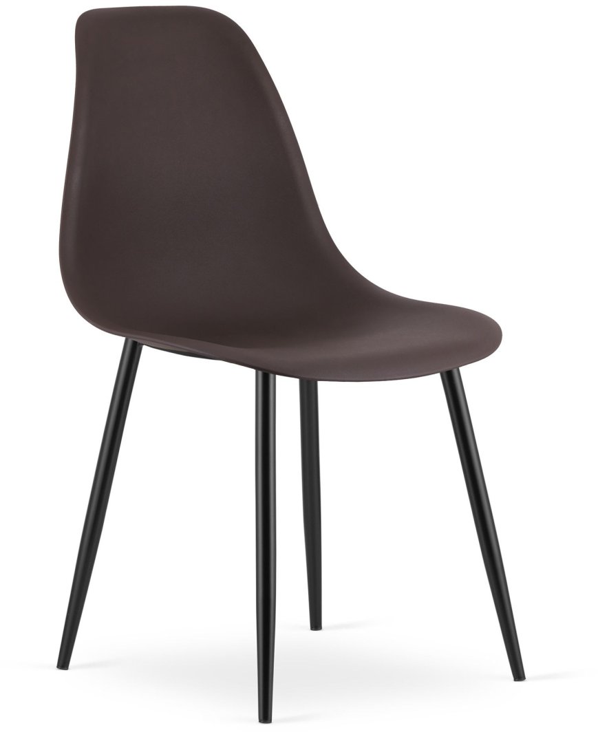 Krzesło WAT wyróżnia się nowoczesnym stylem, który idealnie wpisuje się w aktualne trendy wnętrzarskie. Jego kawowy kolor oraz czarne nogi sprawiają, że jest to mebel, który łatwo dopasować do różnych stylów aranżacyjnych, od minimalistycznych po bardziej klasyczne.
