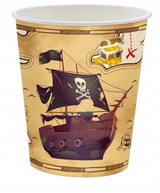 Każdy kubeczek zdobiony jest fascynującymi ilustracjami, takimi jak piracki statek, czarna flaga z czaszką oraz mapa skarbów. Taki design sprawia, że każde przyjęcie staje się niezapomnianą przygodą na morzu, a dzieci poczują się jak prawdziwi piraci.