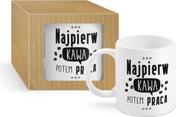 Kubek NAJPIERW KAWA POTEM PRACA 300 ml. Kubki z nadrukiem. Niezwykle praktyczny, ładny i sprawdzony prezent na każdą okazję. Niezwykle estetycznie wykonane, polakierowane, zapakowane w ładne pudełko. Są gotowe do wręczenia na prezent.Pliki do pobrania: