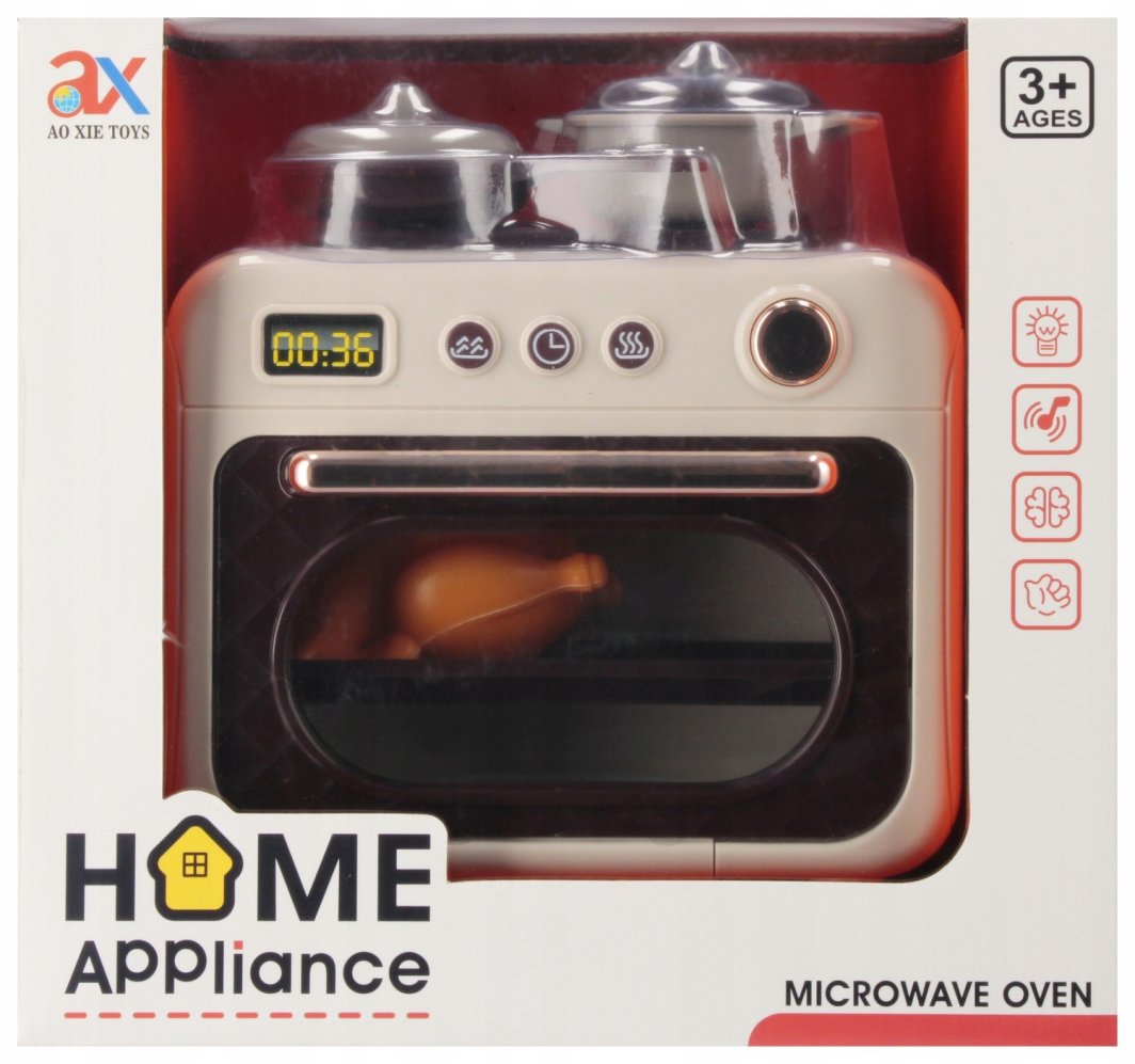 W zestawie znajduje się wszystko, co potrzebne do kulinarnych przygód: kuchenka, garnek z pokrywką, patelnia z pokrywką oraz imitacja pieczonego kurczaka. Dzięki tym akcesoriom dzieci mogą tworzyć swoje własne potrawy i bawić się w gotowanie, co rozwija ich umiejętności manualne oraz wyobraźnię.