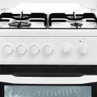 Kuchnia gazowo-elektryczna CSS 52020 DW marki Beko, o szerokości 50 cm, sterowana za pomocą 2 pokręteł piekarnika oraz 4 pokręteł do regulacji wielkości i mocy płomienia palników gazowych. Posiada schowek na naczynia oraz w pełni szklaną wewnętrzną stronę drzwi piekarnika. Komora pieczenia pokryta jest emalią łatwoczyszczącą.