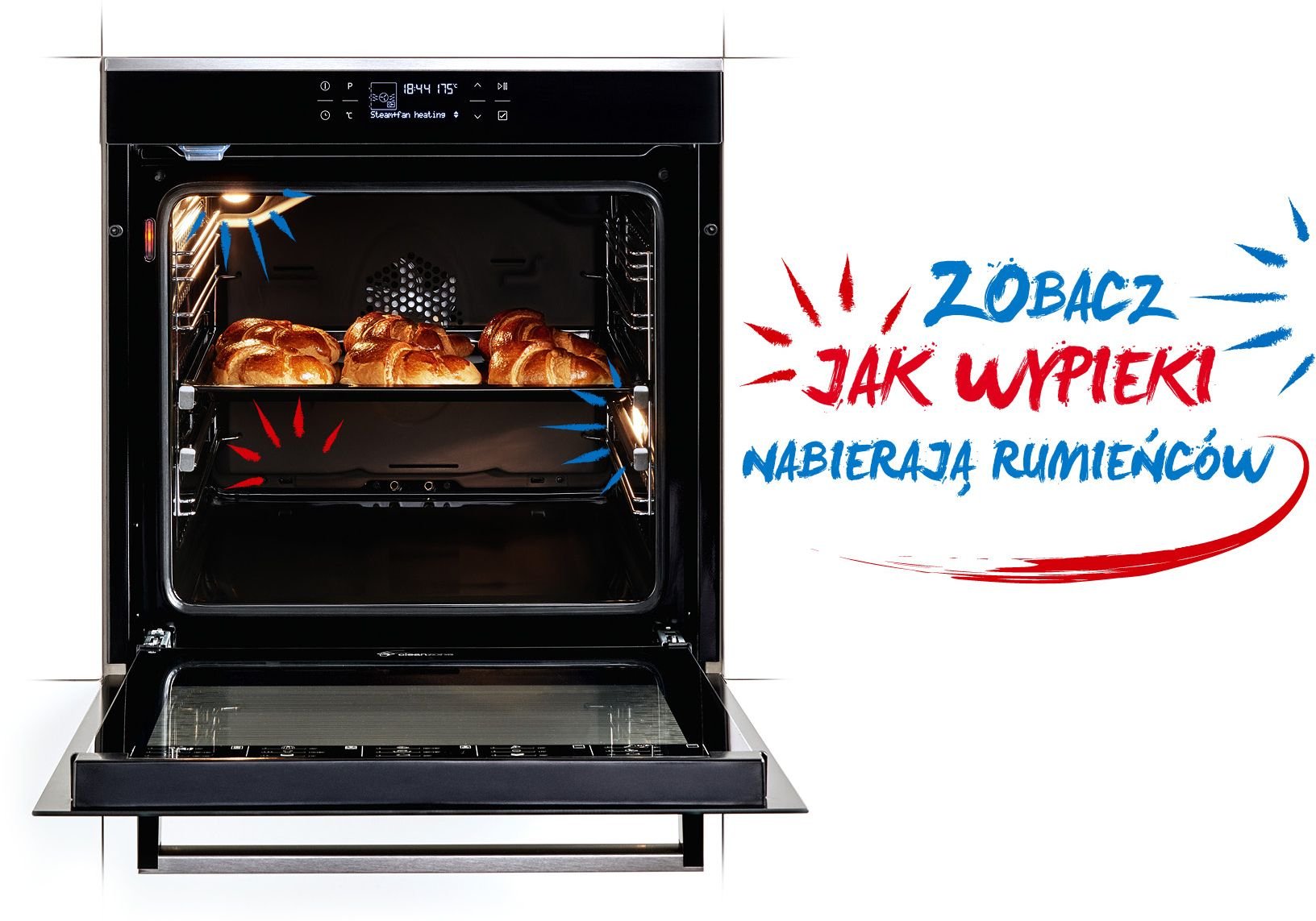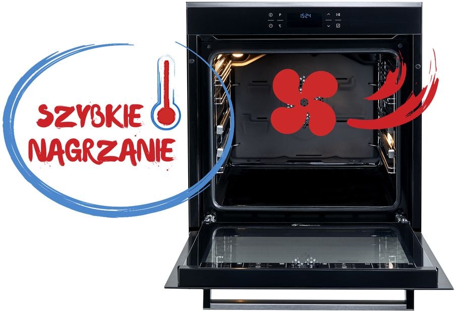 Dzięki równoczesnej pracy dolnej i górnej grzałki oraz termoobiegu możliwe jest szybsze pieczenie! Idealne do przygotowywania na przykład ciastek!