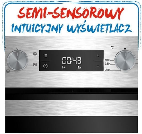 Intuicyjny wyświetlacz i ergonomiczne pokrętła pozwalają na łatwe zarządzanie piekarnikiem. Dzięki nim szybko wybierzemy potrzebną funkcję. Dodatkowo wyświetlacz idealnie wpisuje się w nowoczesną estetykę produktu.