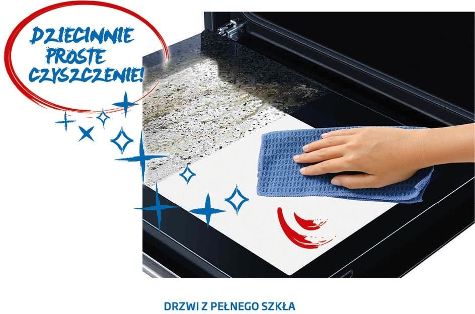 Funkcja pomaga zmiękczyć najbardziej uporczywe zabrudzenia i tłuste plamy, dzięki czemu czyszczenie komory piekarnika jest jeszcze prostsze.