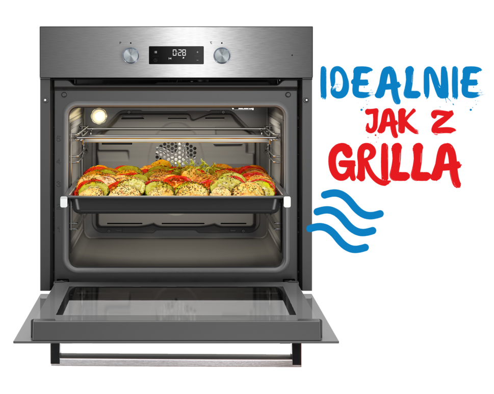 Funkcja ta jest idealna do grillowania mięsa, kiełbasek, tostów czy ryb. Mięsa i ryby dzięki wysokiej temperaturze i funkcji grill nie tracą wartości odżywczych i nie wysychają. Grill pozwala uzyskać efekt chrupiącej skórki i soczystego wnętrza potrawy.