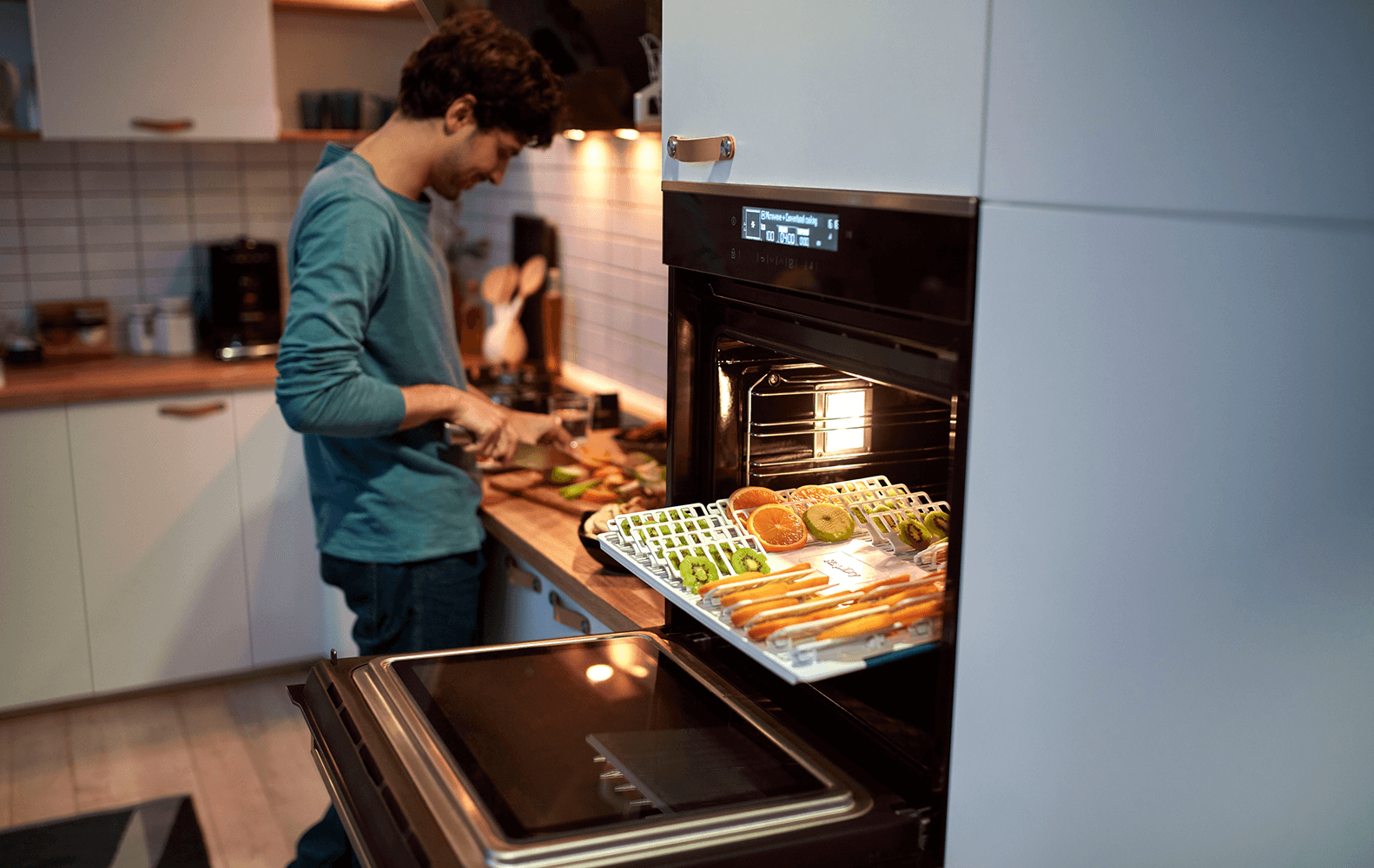 Chcesz zobaczyć, jak przebiega gotowanie, ale nie chcesz otwierać drzwi i marnować ciepła w środku? Oświetlenie halogenowe pomaga dojrzeć całą komorę piekarnika, dzięki czemu możesz mieć oko na swoje kulinarne dzieła przy szczelnie zamkniętych drzwiach piekarnika.