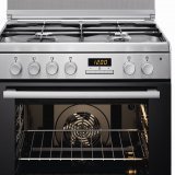 Kuchnia gazowo-elektryczna EKK 6450AOX marki Electrolux, w kolorze stalowym, o szerokości 60 cm, z metalową pokrywą, w klasie energetycznej A+.