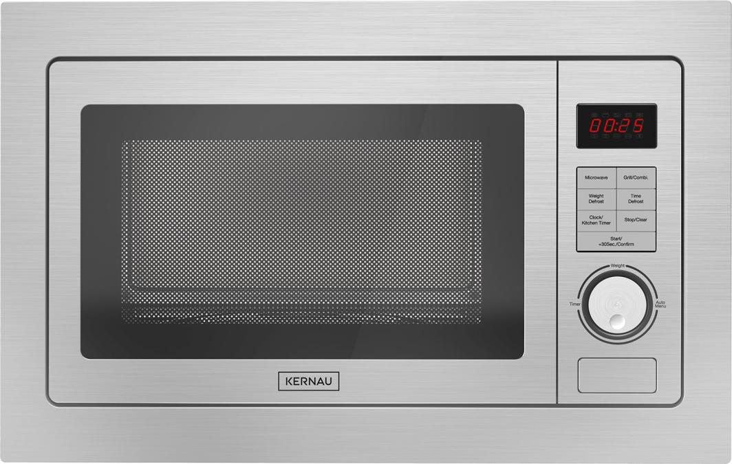 Kuchenka mikrofalowa do zabudowy Kernau KMO 251 G X w kolorze inox o pojemności 25 litrów wyposażona jest w sporej wielkości talerz obrotowy o średnicy 31,5 CM oraz grill kwarcowy o mocy 1000 W. Moc mikrofal wynosi 900W. Sterowana jest przy pomocy pokrętła jak również przycisków Soft-Touch.
