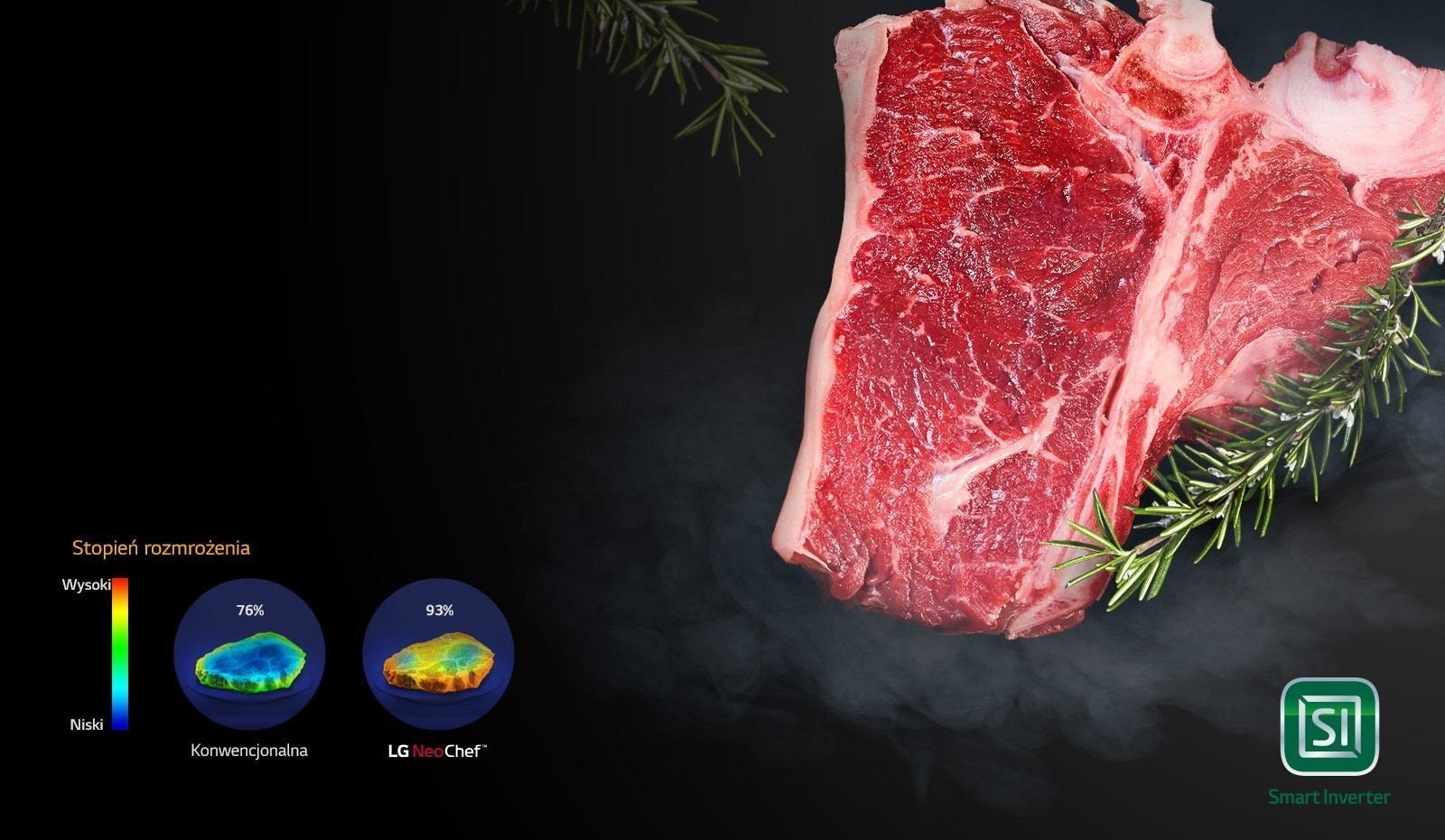 Odpowiednio regulując temperaturę można dokładnie i równomiernie rozmrozić mięso.