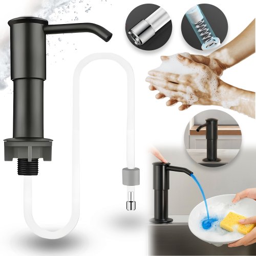 Dozownik wyróżnia się solidną sprężyną oraz wytrzymałym mechanizmem pompy, co zapewnia płynne wydobywanie płynu. Nowoczesne, matowe wykończenie w kolorze czarnym sprawia, że doskonale wpisuje się w różne style kuchni, od minimalistycznych po klasyczne. To idealny wybór dla tych, którzy cenią zarówno estetykę, jak i funkcjonalność w kuchni.