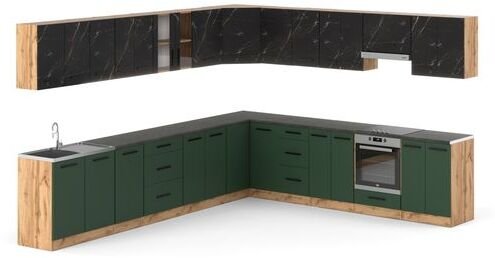 Kuchnia 6.8m Narożna Modułowa Z Blatem Wotan San Sebastian Butelkowa Zieleń