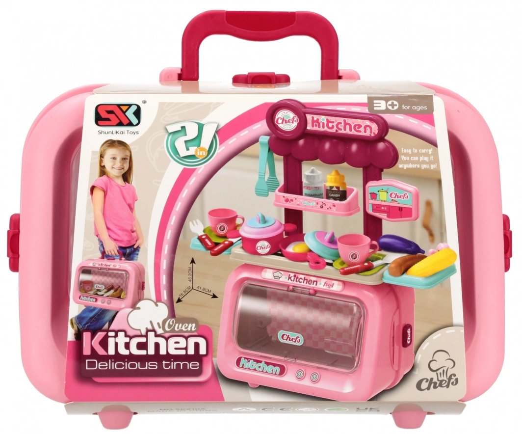 Walizka została zaprojektowana z myślą o łatwości przenoszenia i przechowywania. Dzięki kompaktowym wymiarom, dzieci mogą zabrać swoją kuchnię wszędzie, co sprawia, że zabawa staje się jeszcze bardziej atrakcyjna. Wysokiej jakości materiały użyte do produkcji zapewniają trwałość oraz bezpieczeństwo podczas zabawy.