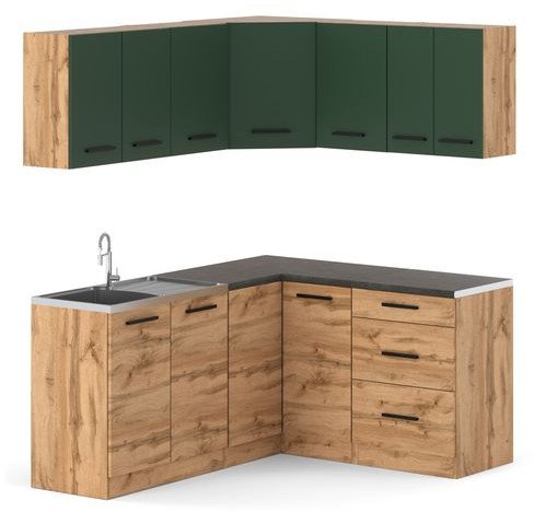 Kuchnia Nowoczesna Modułowa Blat 6.8m Narożna Biała Butelkowa Zieleń Wotan