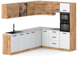 Kuchnia Nowoczesna Z Blatem Pojemna Narożna 4.6m Wotan Dąb Wotan Biały Mat