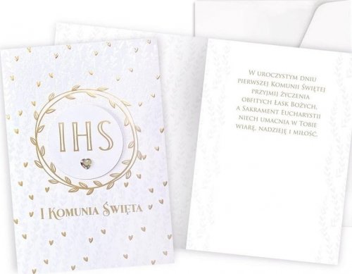 Kartka B6 z ozdobnej serii Dream Cards na Komunię - nieduża, ale robi wrażenie dzięki atrakcyjnej kolorystyce i ciekawym zdobieniom. To idealny wybór łączący przyjazną cenę z jakością. Cechy szczególne: wielkość: B6, 16.6 x 11.7 cm po złożeniu, koperta: w zestawie, kolorowa, zdobienia: różnorodne, bogate (w zależności od wzoru: przyklejane dekoracje, elementy biżuteryjne, odstawniki, brokat metaliczne folie, tłoczenia itp.), okazja: Komunia