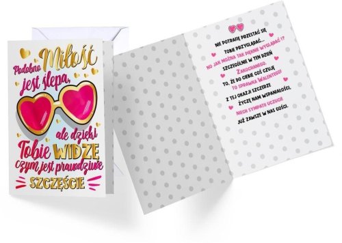 Wnętrze kartki zachwyca kolorami i zawiera starannie dobrany tekst życzeń, co nadaje jej osobistego charakteru. Dzięki temu każdy, kto otrzyma ten karnet, poczuje się wyjątkowo i doceni starania, jakie włożono w jego wybór.