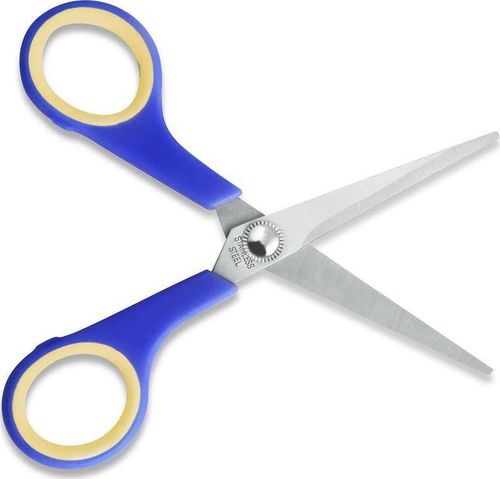 Praktyczne i uniwersalne nożyczki z miękkim uchwytem, których ostrza wykonane są z wysokiej jakości stali nierdzewnej, a rękojeści z tworzywa sztucznego. Dzięki miękkiemu wykończeniu wewnętrznej części uchwytu, używanie nożyczek jest wygodniejsze, a nacisk dłoni przy pracy bardziej zamortyzowany. Długość całkowita 14 cm. Długość ostrza 8 cm.