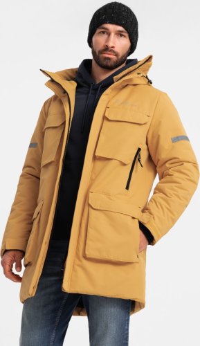 Kurtka męska Ombre Długa ocieplana męska kurtka z odblaskowymi elementami żółta V2 OM-JALJ-0169 S