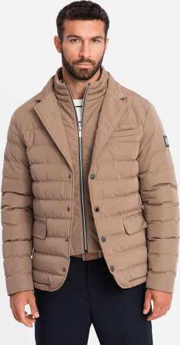 Kurtka męska Ombre Pikowana męska kurtka o kroju marynarki beżowa V5 OM-JALP-0188 XL
