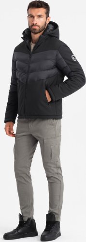 Kurtka męska Ombre Pikowana męska kurtka z łączonych materiałów z wysokim kołnierzem czarna V1 OM-JALP-0172 M