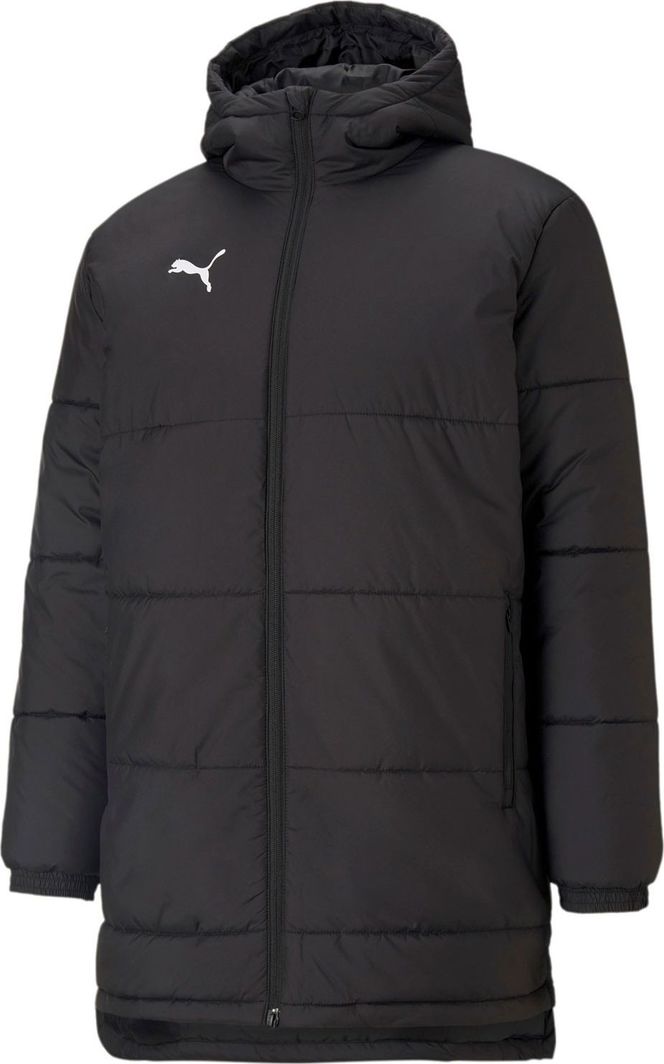 Puma Bench Jacket Właściwości: - kurtka zimowa - wydłużony krój - zapinana na zamek błyskawiczny - posiada dwie boczne kieszenie zapinane na zamek - elastyczne mankiety - wykonana w technologii WarmCell / zatrzymująca ciepło - skład : 100% poliester - kolor : czarny Ta kolekcja jest dla tych, którzy lubią walkę tak samo jak wygrywanie. Przeprojektowany krój zapewniający wysoką wydajność i doskonałą wygodę noszenia. Dla Twojego komfortu poza boiskiem i meczów na boisku.