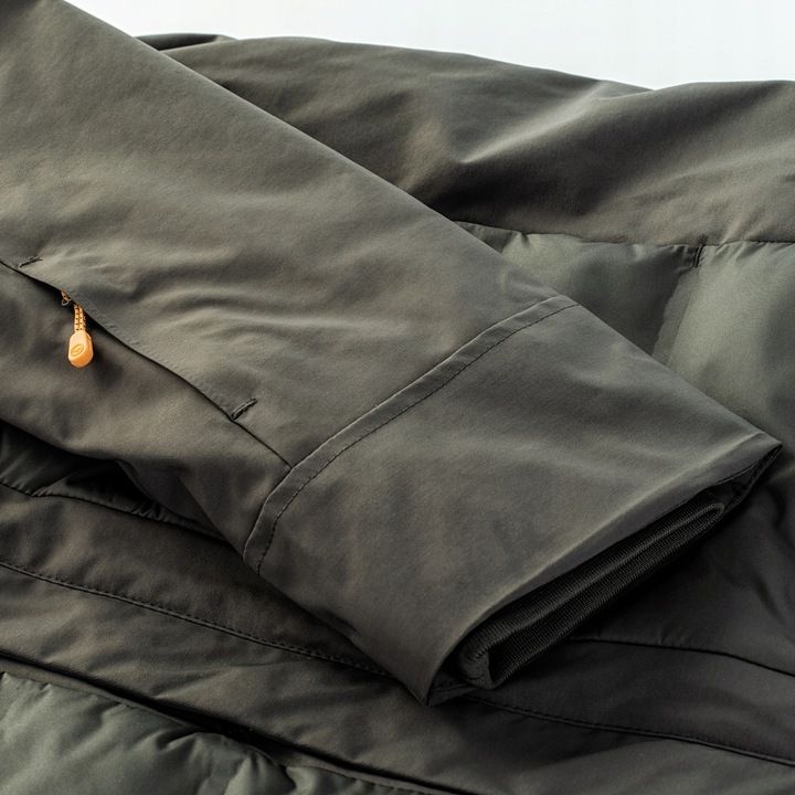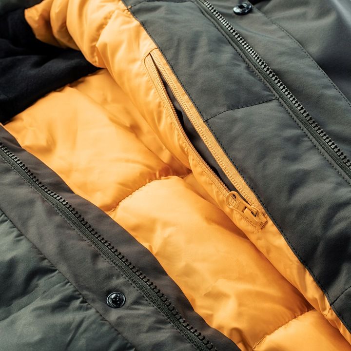 Kurtka została wyposażona w kieszenie boczne i otwory wentylacyjne. wysoka stójka z suwakiem została zakończona patką chroniącą podbródek. Powłoka DWR to rodzaj specjalnej, bardzo trwałej impregnacji tkaniny zwiększającej napięcie powierzchniowe materiału, jej głównym zadaniem jest zapewnienie wysokiego stopnia wodoodporności. Kurtka wykonana z wytrzymałego poliestru zapewni długi okres użytkowania, natomiast podszewka świetnie sprawuje się utrzymując ciepło użytkownika. Dodatkowym atutem jest odpinany kaptur.