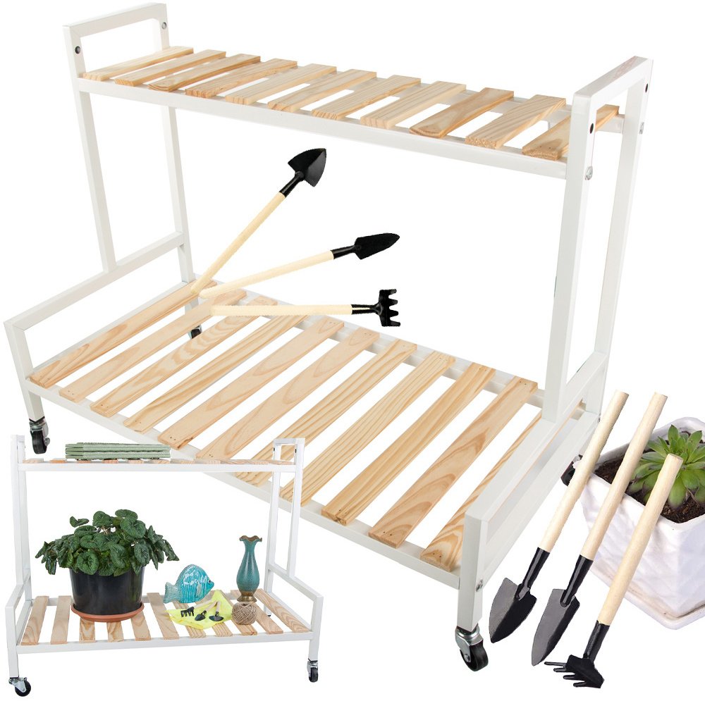 Kwietnik drewniany na kwiaty doniczkowe dwupoziomowy półka na kółkach taras