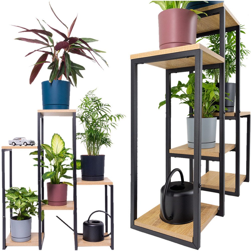 Kwietnik stojący metalowy PANORAMA 6 poziomowy – elegancki stojak na kwiaty i rośliny DĄB
