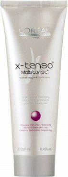 Loreal X-Tenso Moisturist Smoothing Cream przeznaczony jest do włosów wymagających prostowania: naturalnych, szorstkich, opornych i uwrażliwionych. Zawiera technologię kationową mającą zdolność do osadzania się na ujemnie naładowanych, zniszczonych partiach włosów wypełniając je i regenerując. Dodatkowo wosk zmiękczający wygładza, odżywia i odbudowuje włosy oraz sprawia, że są one bardziej podatne na prostowanie.