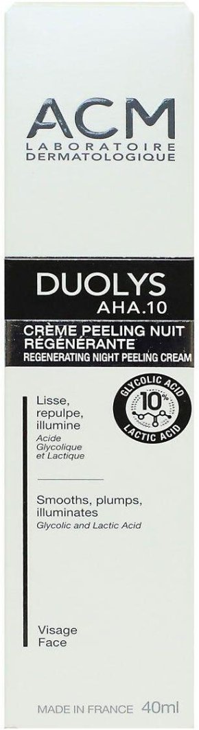 Krem peelingujący na noc ACM Duolys AHA 10% to nowoczesny produkt, który skutecznie regeneruje skórę twarzy podczas snu. Dzięki unikalnej formule z 10% kwasami AHA, oferuje delikatne złuszczanie, poprawiając teksturę skóry i przywracając jej naturalny blask.